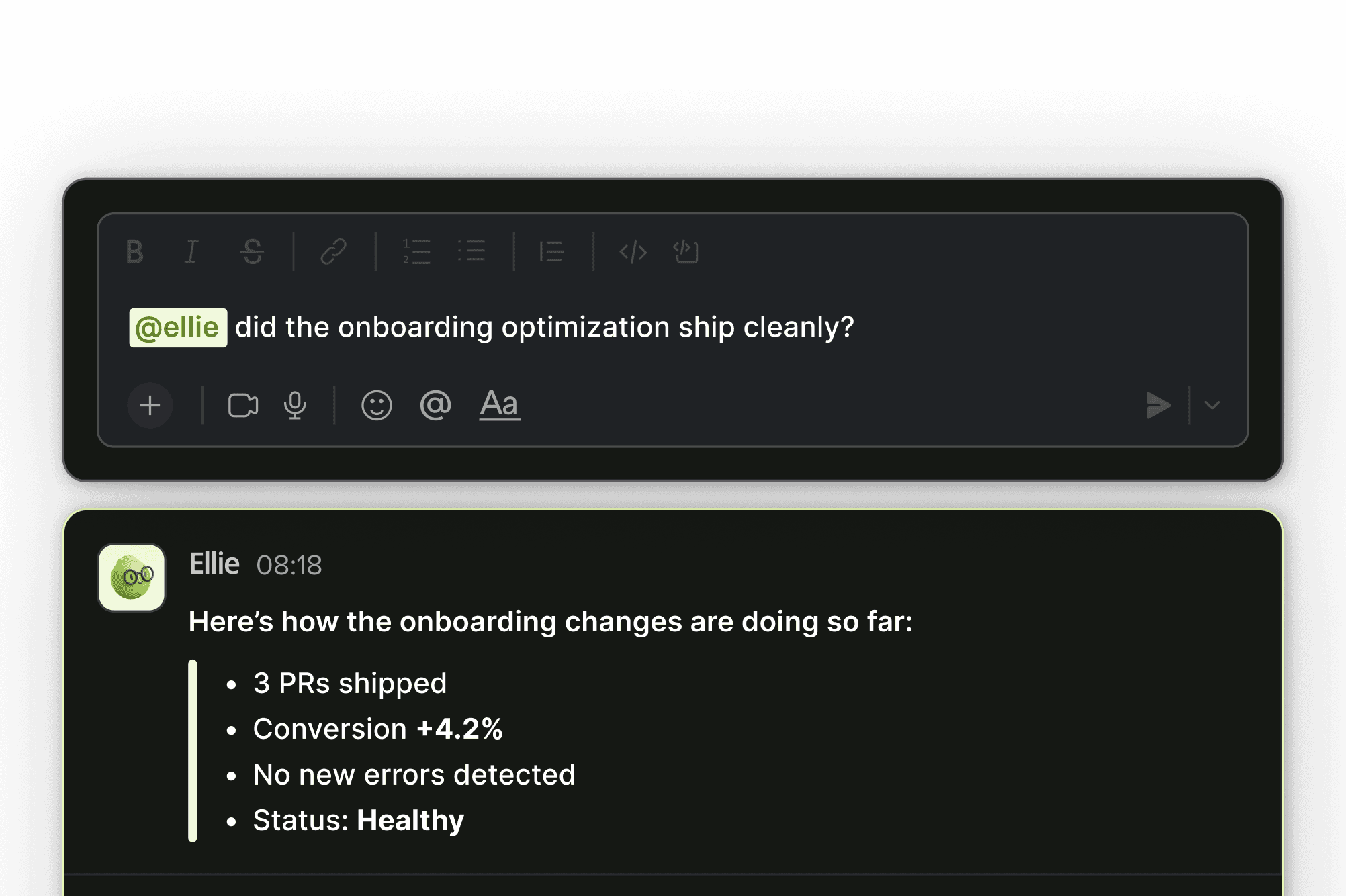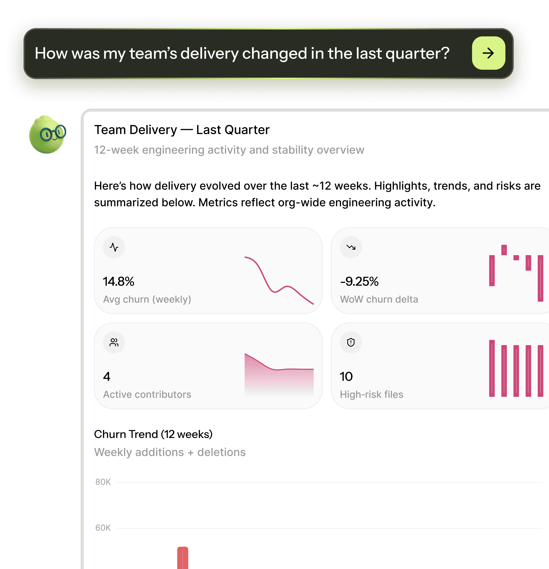 Ellie reads signals across your code, delivery, and product, so you don’t have to.