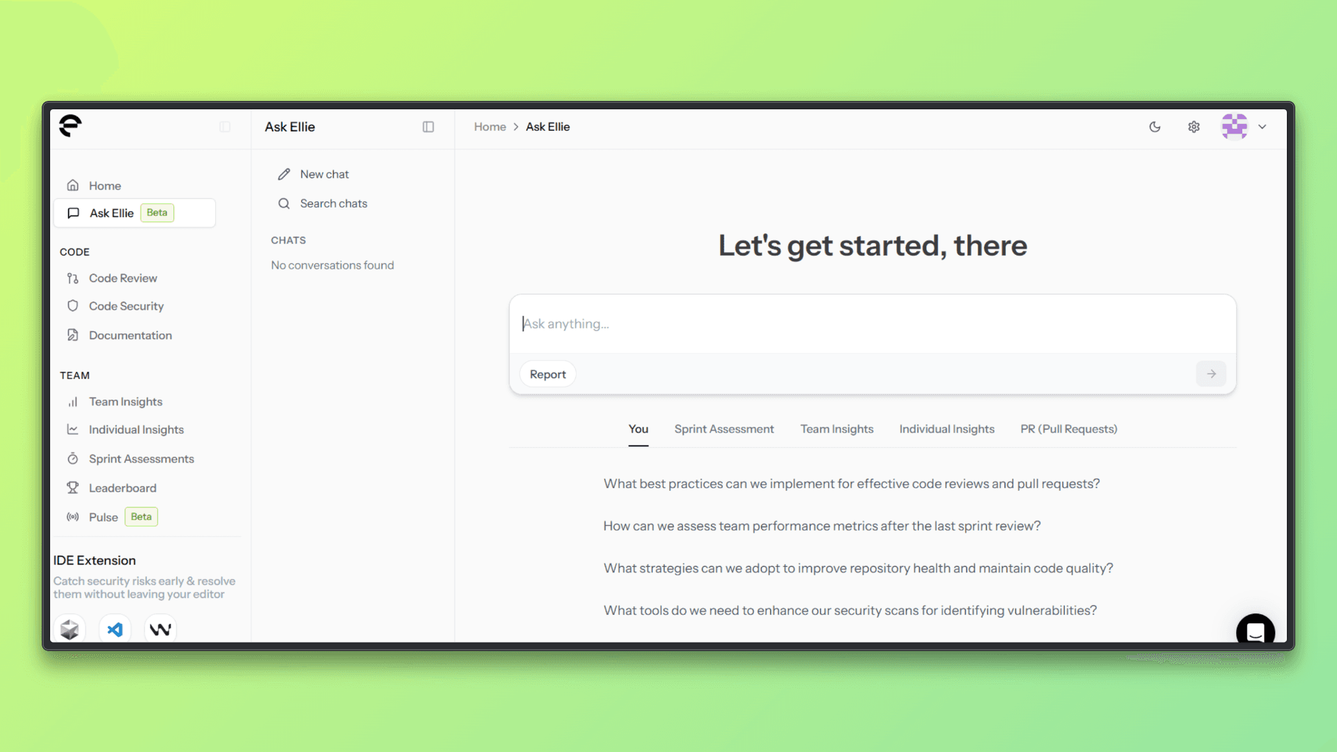 Try Ask Ellie to understand code, delivery, and team performance directly from chat.