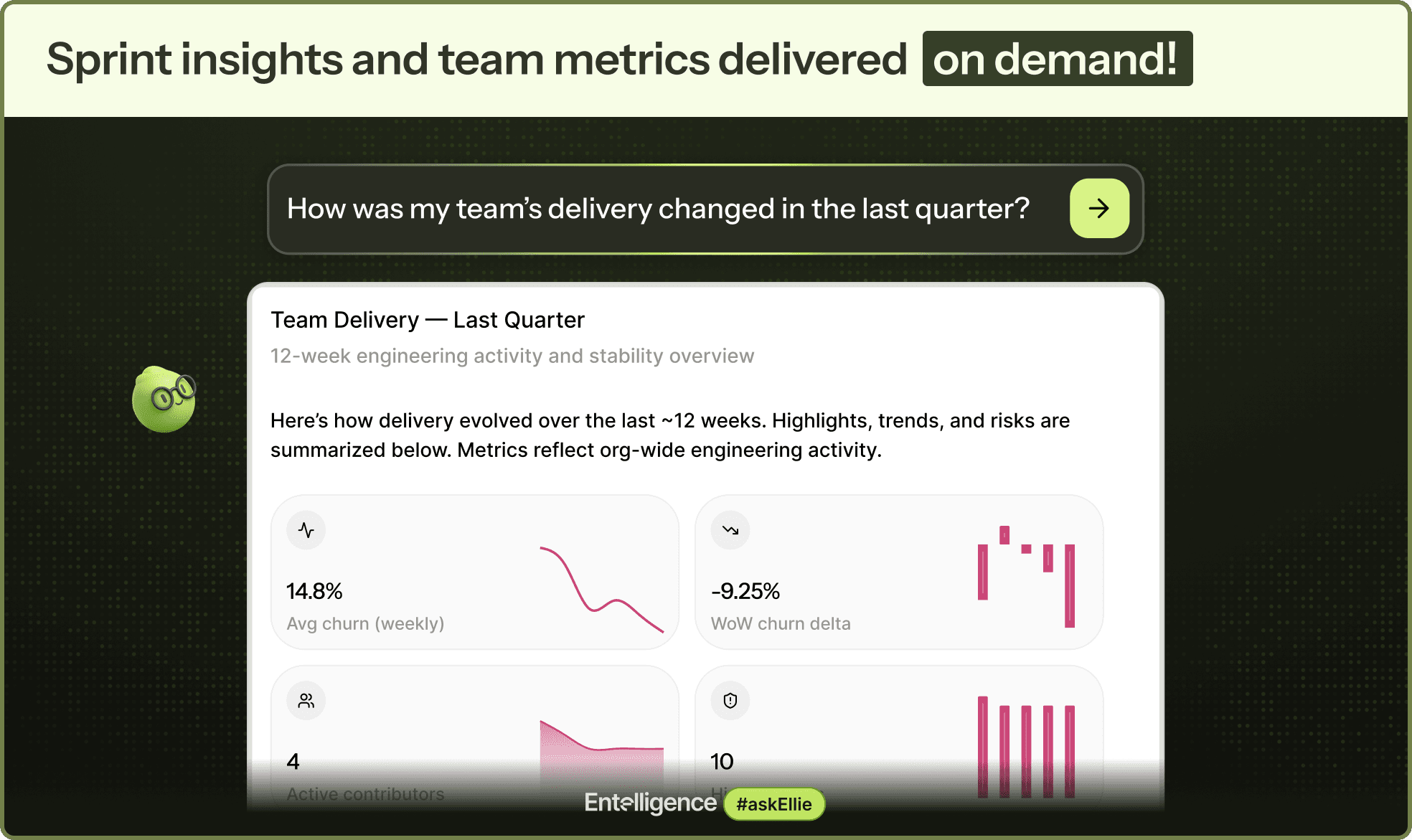 Ask Ellie’s responses are backed by real repository data and live sprint information. They can be used directly to drive action. Engineers, managers, and leaders can move from understanding a situation to acting on it without leaving chat.