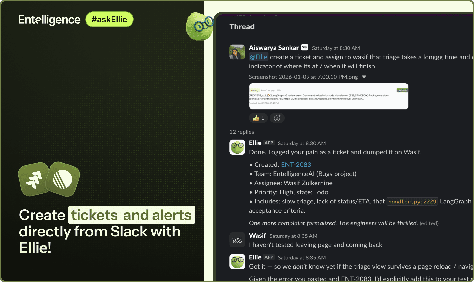 Ask Ellie is available both inside Slack and within the Entelligence dashboard, allowing teams to access the same information in the environment where they already work.