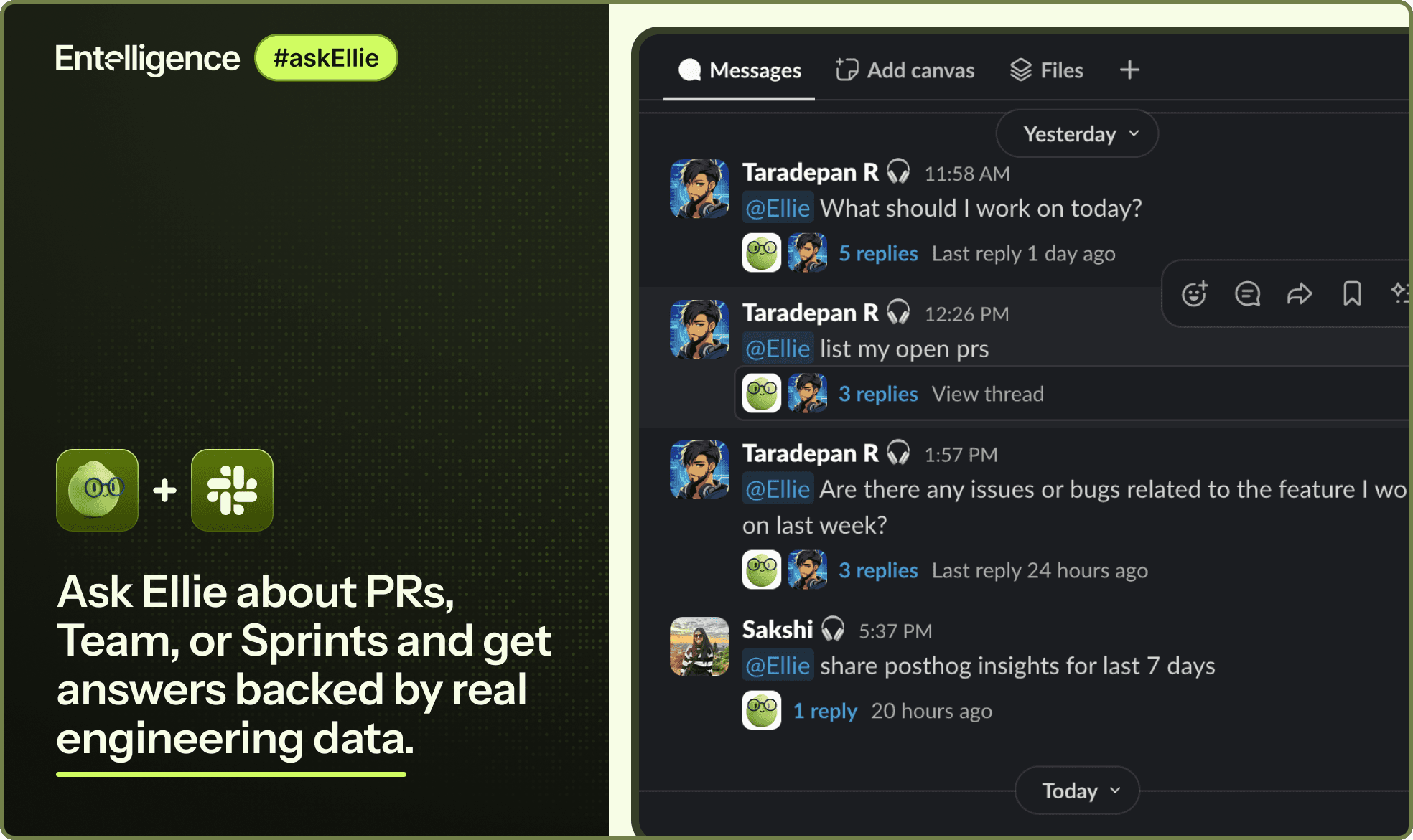 Entelligence addresses this problem through Ask Ellie, an engineering intelligence chat interface available in Slack and the Entelligence dashboard. In this article, let us explore how Ask Ellie helps teams query real engineering data, understand ongoing work, and make informed decisions without adding more tools or dashboards.