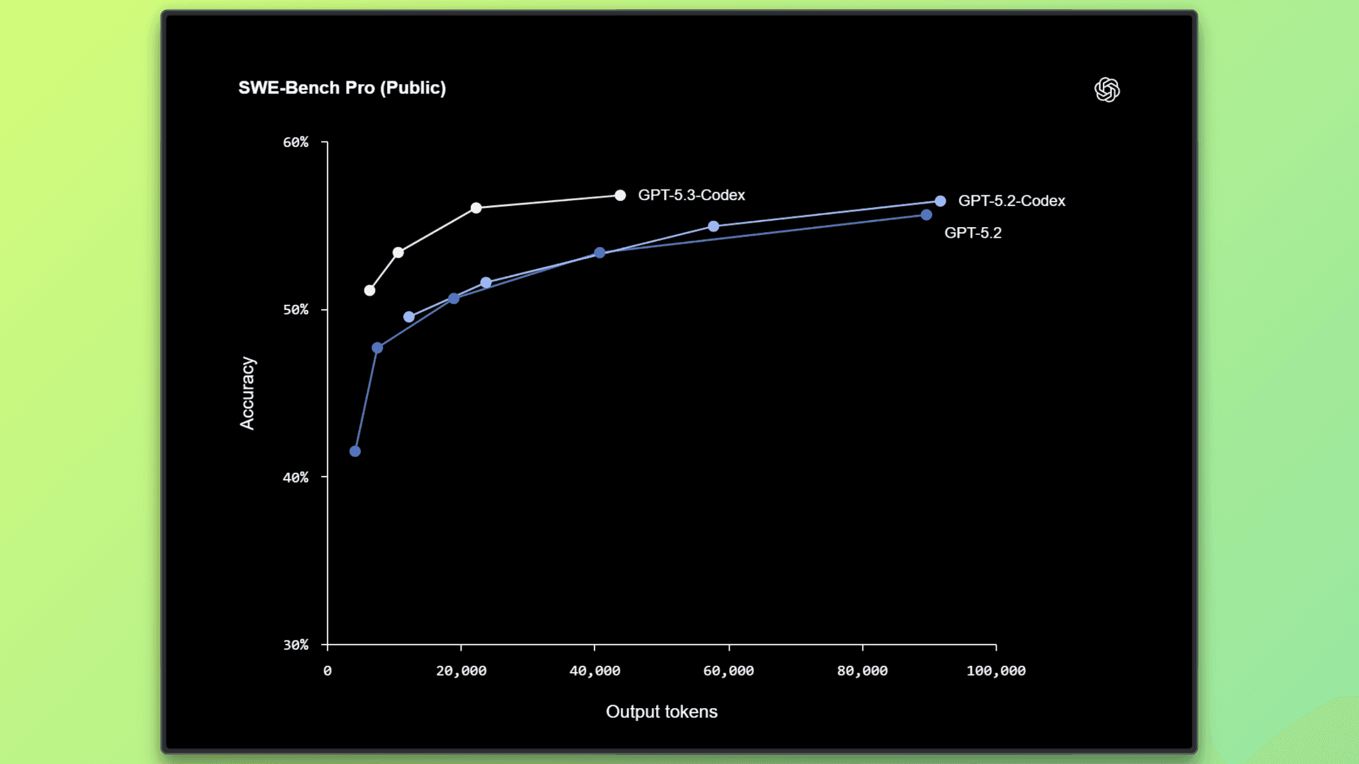It sets new highs on real-world benchmarks (56.8% SWE-Bench Pro, 77.3% Terminal-Bench, 64.7% OSWorld-Verified) while running ~25% faster and using fewer tokens.