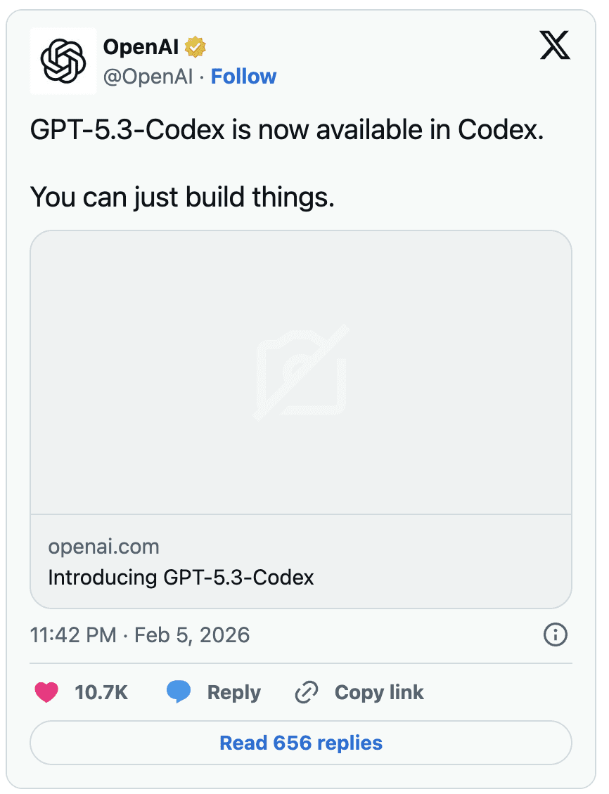 GPT 5.3 Codex has just launched, bringing stronger agentic capabilities, better execution, and improved performance across real-world developer workflows.