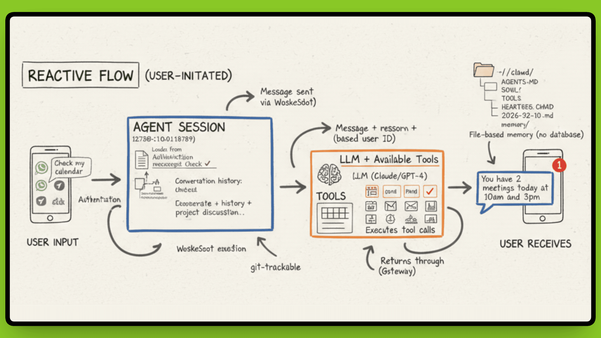 But memory alone doesn't make an agent proactive. For that, OpenClaw needs a mechanism to wake up and check things without you asking. That's where the heartbeat comes in.