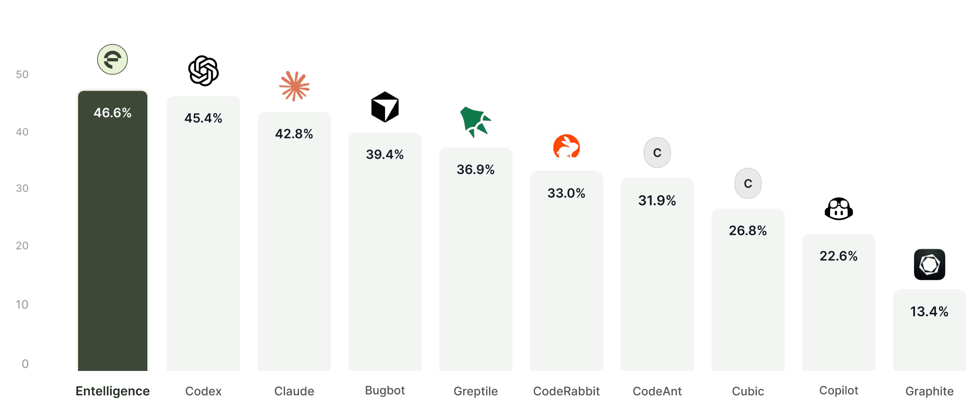 F1 score from one of our benchmarking reports against different code reviewers: