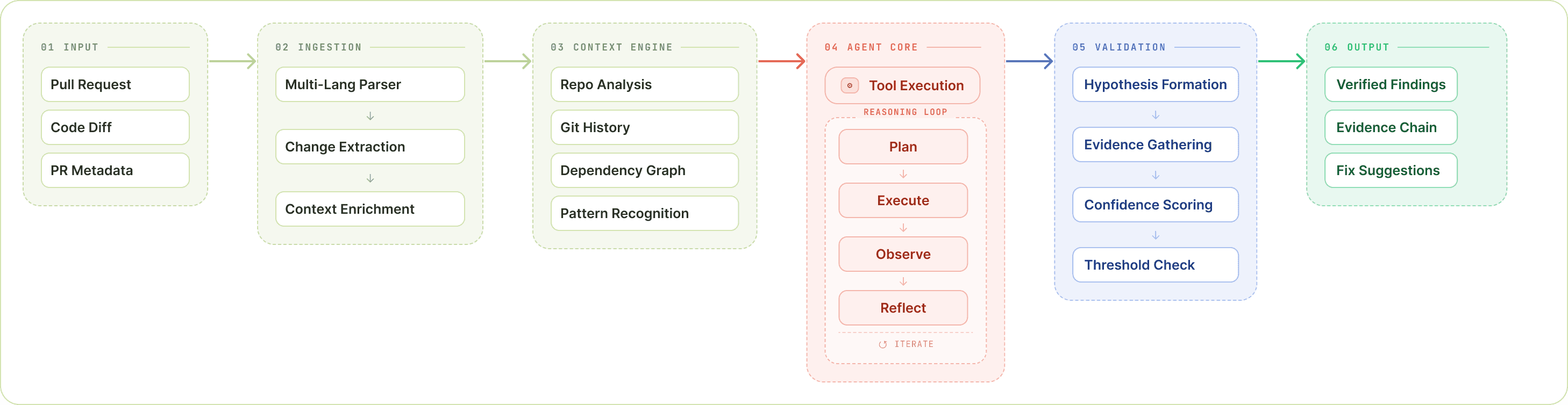 This is what makes the adversarial loop work. Every hypothesis the reviewer forms can be checked against the actual code. Every assumption can be validated or disproven. The reviewer explores your codebase the way a senior engineer would, pulling threads until they resolve.